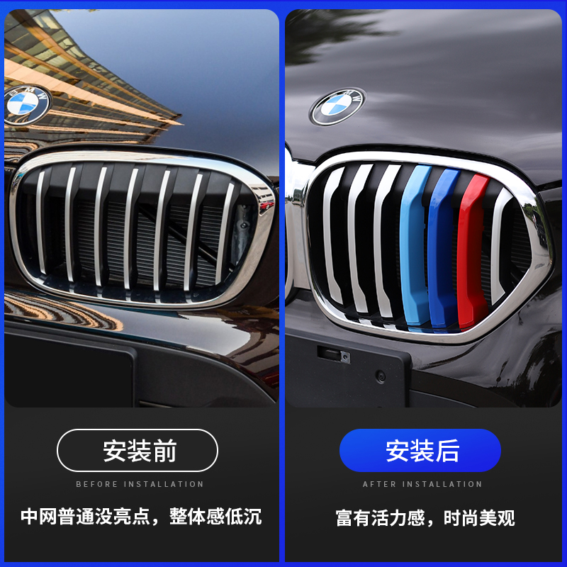 08-22 models BMW New Old X5X6 mid-net tricolour trim strip E70 F15 mid-net tricolour buckle bodywork retrofit
