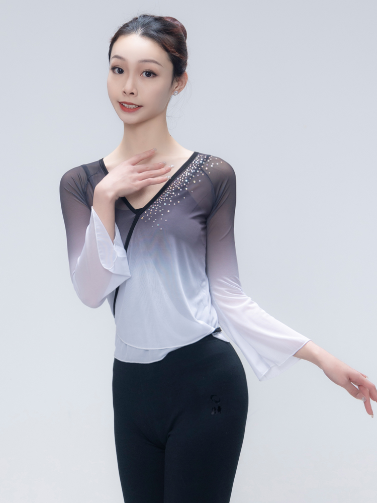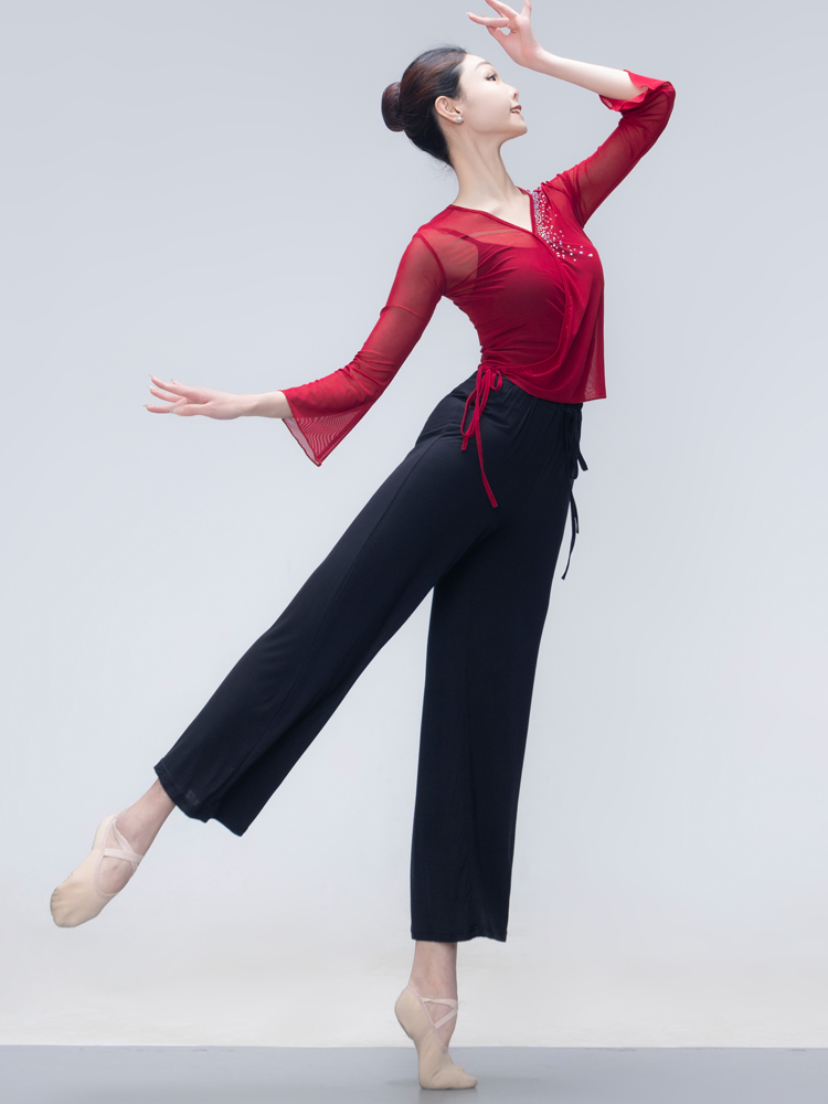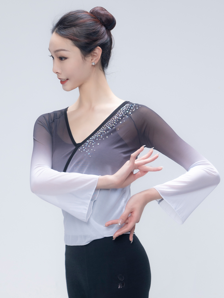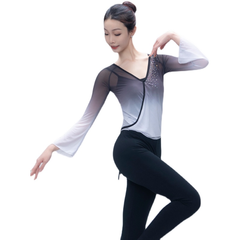 Classical Dance Dancer Costume Woman Long Sleeve Lacing Body Rhyme Clothing National Base Precept Color Practice Kungfu Coat Women