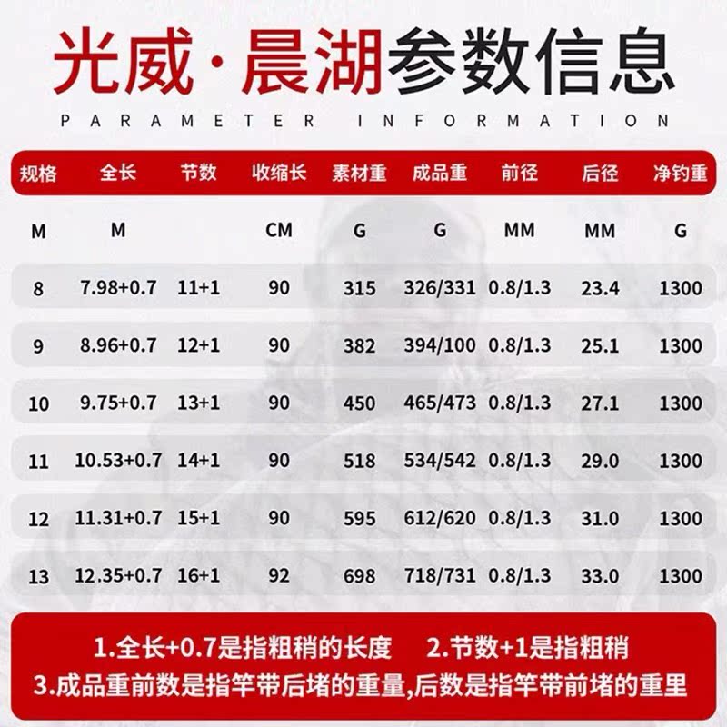 Guangweichen Lake hand rod 8m-13m carbon hand rod medium and long section ultra-light ultra-hard nesting gun rod traditional fishing rod