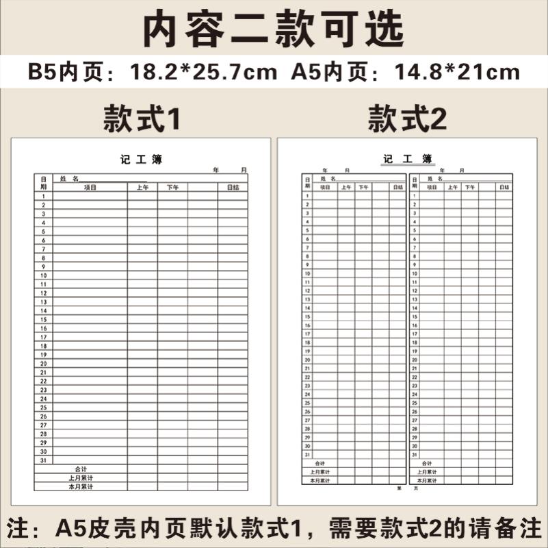 Workers' local construction employees' personal workday attend custom print construction record book multifunctional universal attendance table 31 days to work to work mini artifact