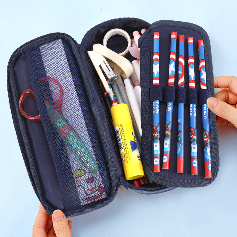 Primary School Student Pen Bag Large Capacity Multifunction Multilayer Pencil Case Boy Korea Creative Carrying Stationery Bag Gift Blue Minimalist Korean Version Lead Pencil Case Net Red Canvas Double Day Type Pure Color Pen box