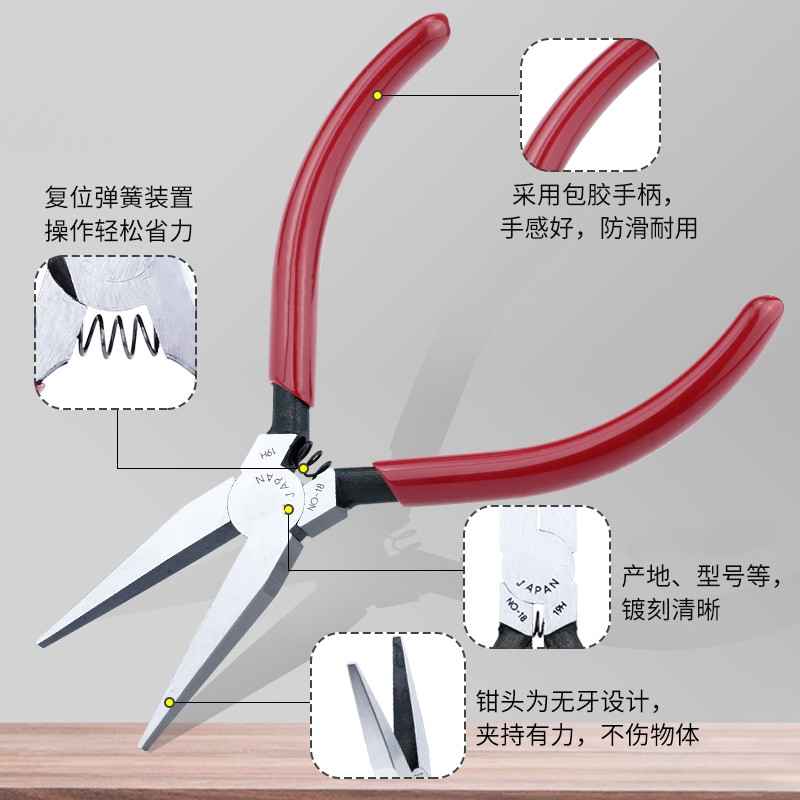 Toothless Flat Mouth Pliers 5 Inch 125mm Mini Flat Mouth Pliers No Teeth Flat Mouth Industrial Grade -18 Imported Red Handle Electronic Pliers
