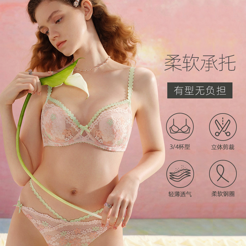 Curious Miss sexy lace lingerie women summer thin big breast small bra set girly adjustable bra