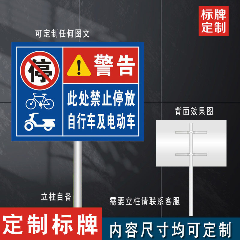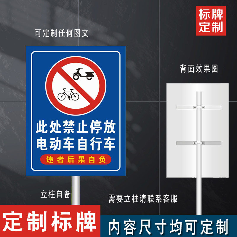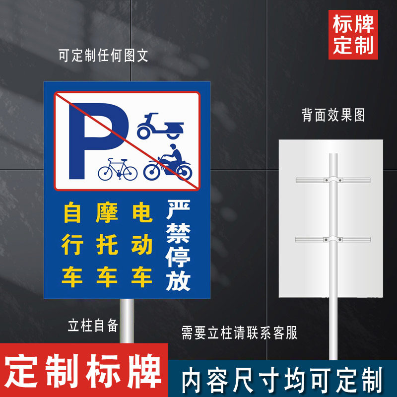 Outdoor road traffic signs Reflective Film Aluminum Board Custom Warning Forbidden Parking Warning Signs Standing Signs of Vehicles limiteThe identification card strictly forbidden to park the vehicle upright post Custom Pattern