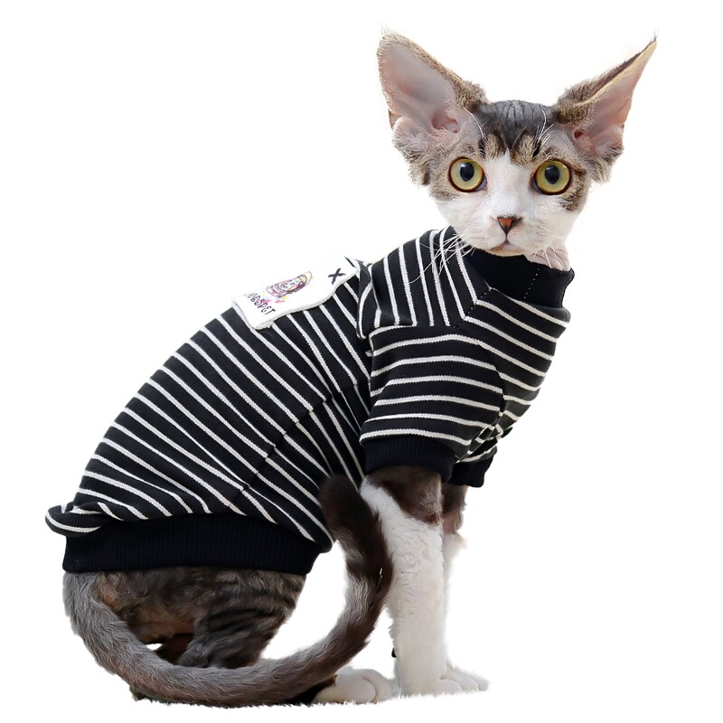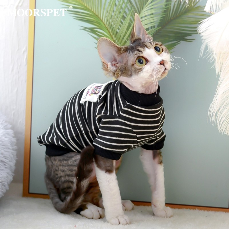 MOMO Striped Shirts Devin Cat Clothes Ins Korean version Spring and autumn clothing Pets anti-fall Mao Ying Short hairy cat clothes