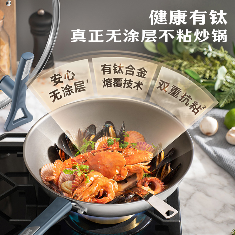 Calibre 30cm No coating non-stick (stainless steel base material titanium cladding) glossy version calibre 32cm No coating non-stick (stainless steel base material titanium cladding) glossy version calibre 30cm