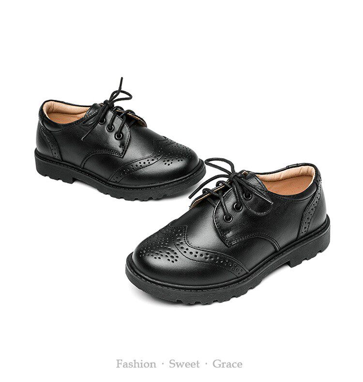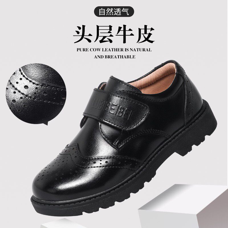 Boy leather shoes Inn Wind spring autumn black boy Soft bottom genuine leather shoes Elementary school children Performance shoes Children's performance shoes