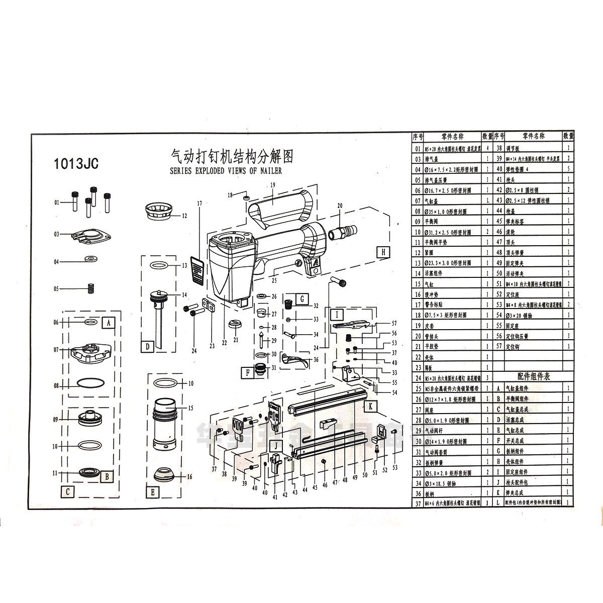 Zhongjie pneumatic tool accessories S1310 plastic code nail gun tongue clip universal east into S1013 cylinder sealing ring