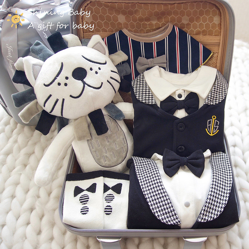 Baby Gift Box High-end Spring Autumn Clothes Suit Pure Cotton Gentleman Dress Full Moon 100 Day Male Baby Birthday Gifts