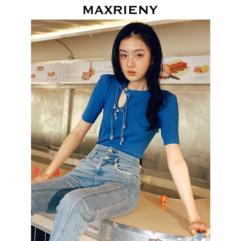 MAXRIENY Klein blue knit blouse women 2022 spring sweet and spicy New China wind disc buckle style sweaters