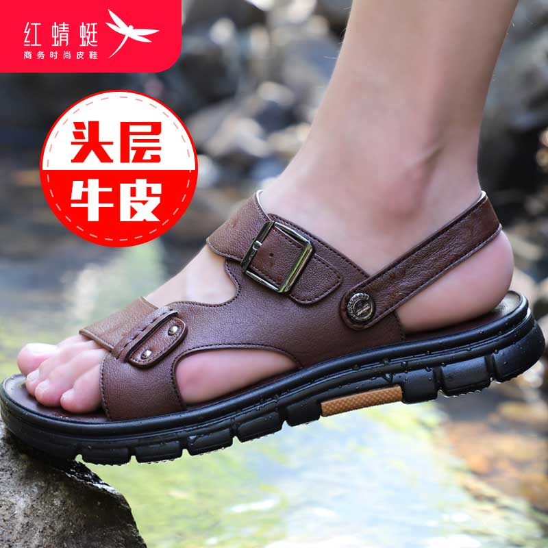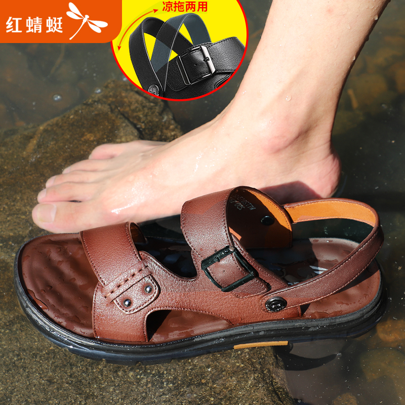 Red Dragonfly Sandals Sandals Men 2022 Summer Dermis Soft Bottom Outside of Men's Dual-use Slippers Older Dad Beach Shoes