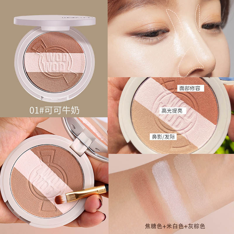 Glitter repair disc high light integrated disc flash powder face brightening thin flash matte nose shadow shadow blush three-in-one beginner