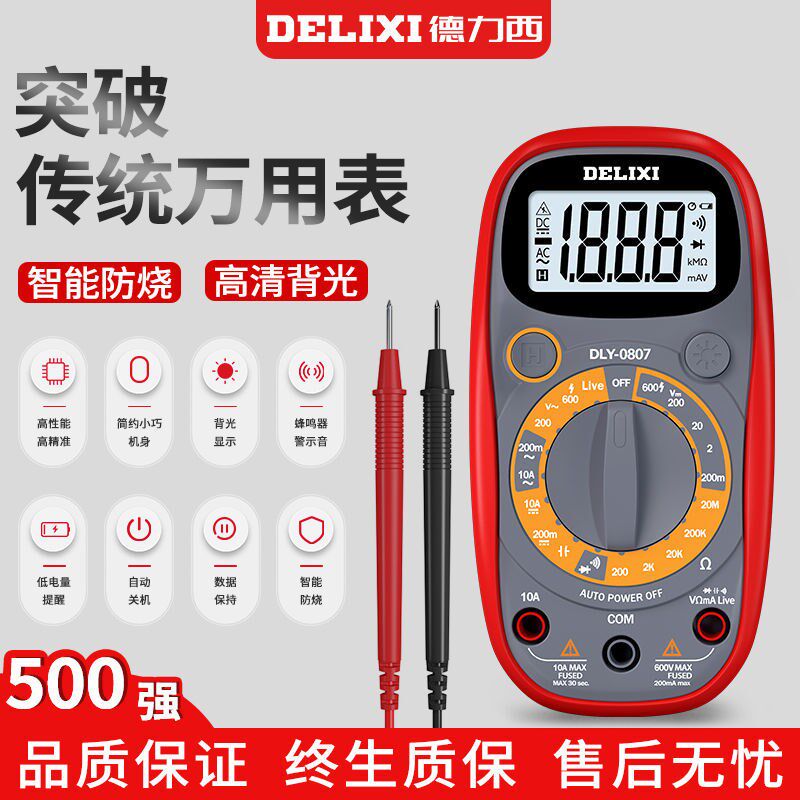 Forluk Official DeLixi super-small multimeter high precision digital small table electrician special home portable mini