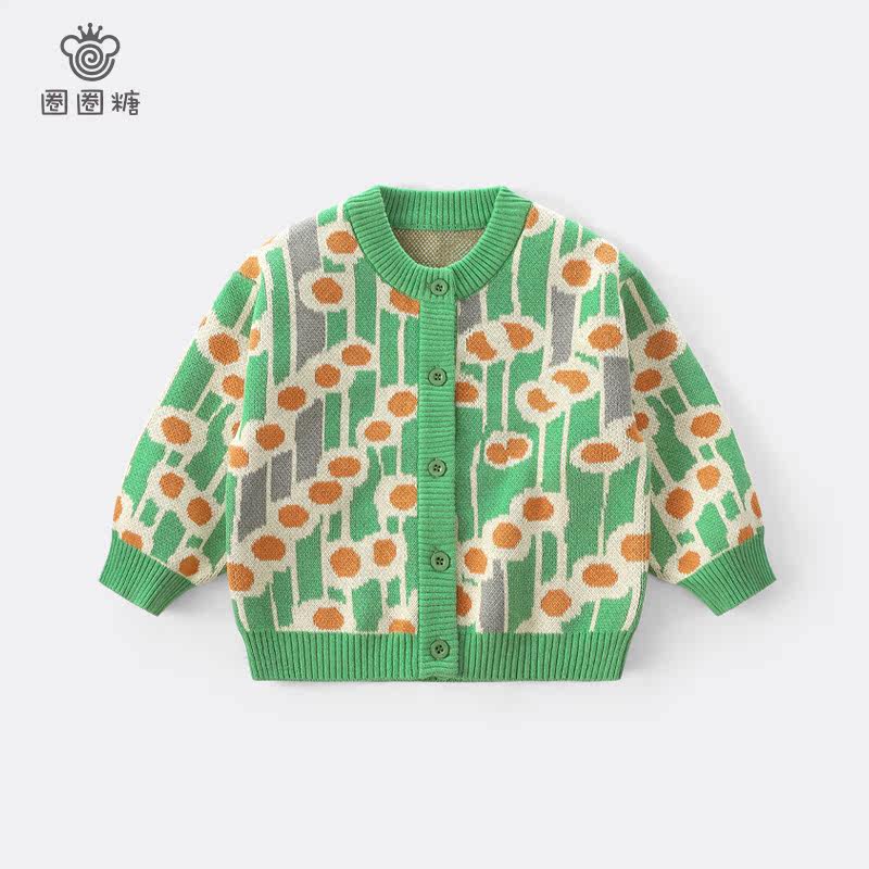 Lap ring sugar 2022 girl spring dress new sweater cardiovert baby stitch cardiovert baby long sleeve jacket child outwear