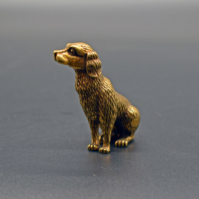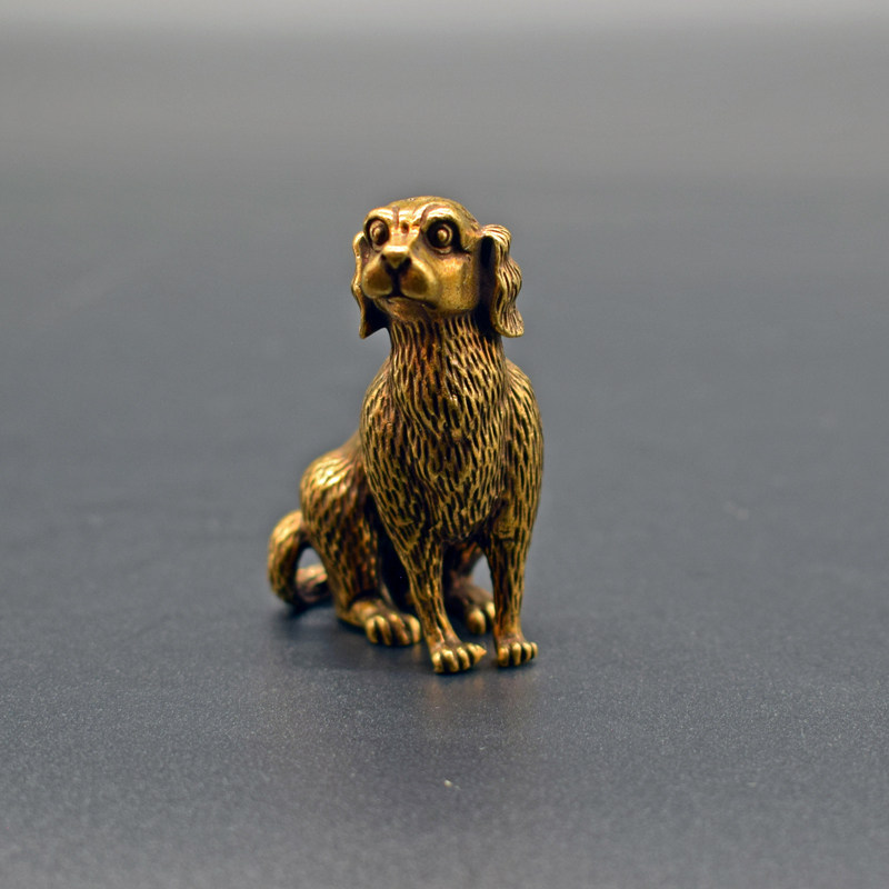 Prosperity copper dog small ornament solid brass puppy handle piece copper art bronze sculpture zodiac dog antique bronze ware old bronze sculpture