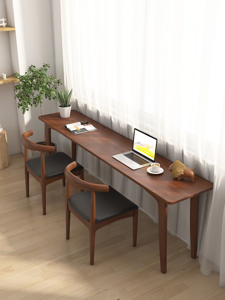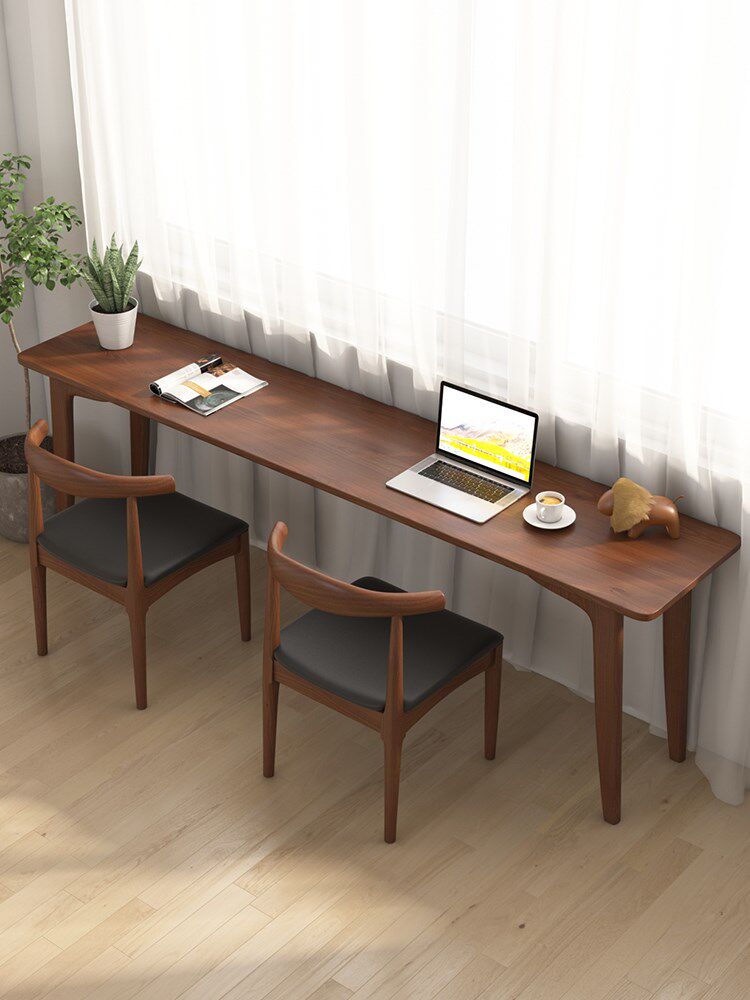 Double office computer desk full solid wood desk strip table close by window close to wall narrow table desk studio bedroom