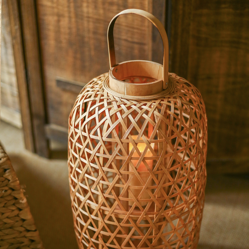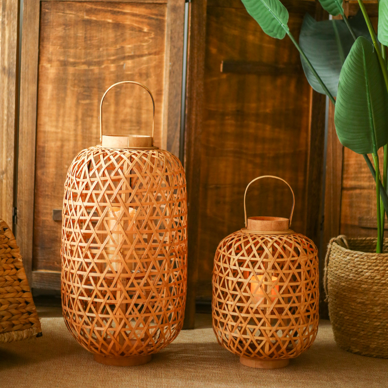 JK Mmu Space Natural Original Wood Color Decoration Lantern Floor Tabletop Candle Terrace-like room Balcony Living Room Folk lamp
