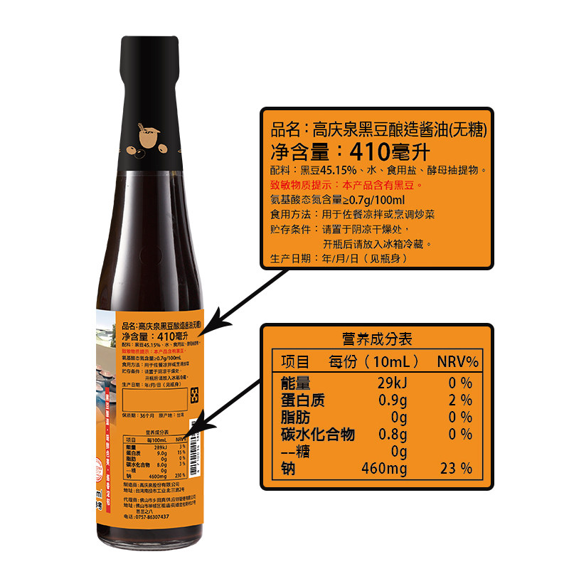 Black bean brewing soy sauce (no sugar) 410ml * 1 bottle of black bean brewing soy sauce (with sugar) 410ml * 1 bottle of black bean brewing soy sauce (no sugar) 150ml * 1 bottle