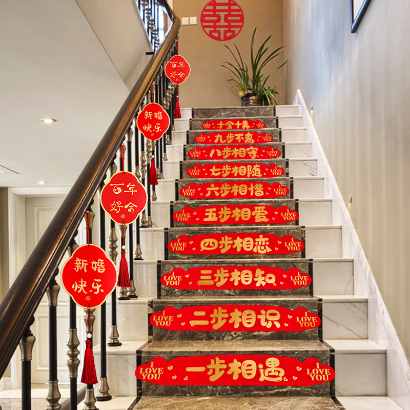 Happy words stairs post * 50 Mickey Festive Stairways * 50 Round Joy Stairs Post * 50 Loving Staircase Stick* 50 Romantic Full House Bronzing Gold Paper Staircase Stick for the rest of your life is you hot