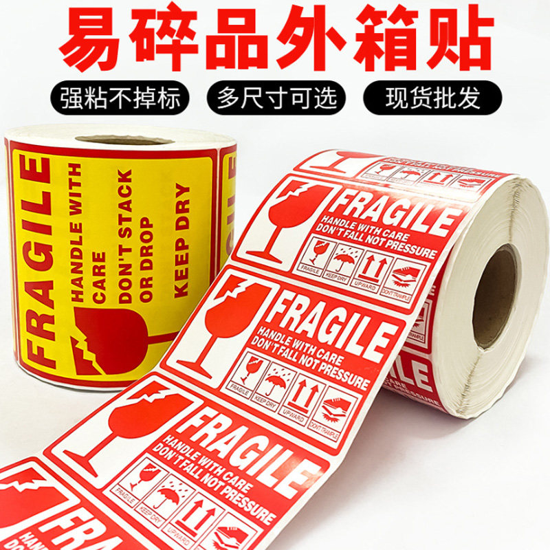 Adhesive sticker easy crumbles in English labels Sticker Express Logistics Fragile warning tone Fragile Label Label car Labeling Cross-border International Logistics Amazon Entrance Mark