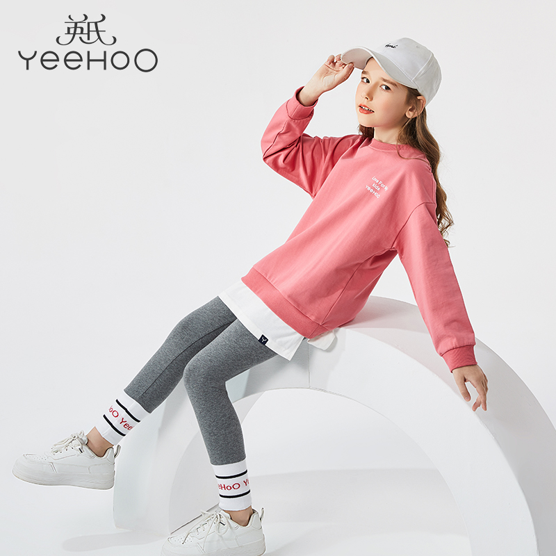 Yingzi Girl Suit 2022 New Spring Clothing Children Pure Cotton Sweatpants Thick Cotton T CUHK Scout Two sets for spring autumn