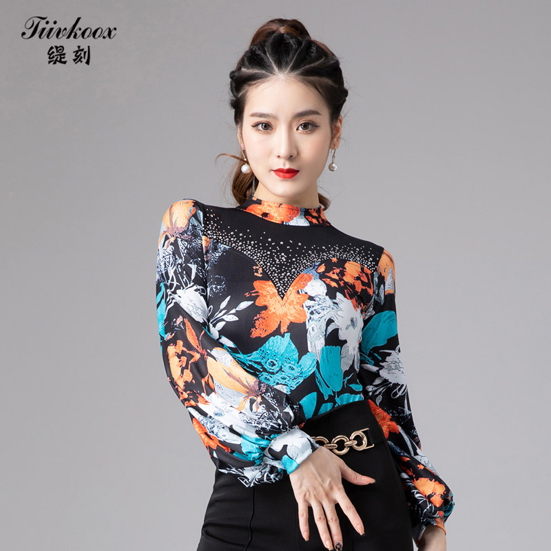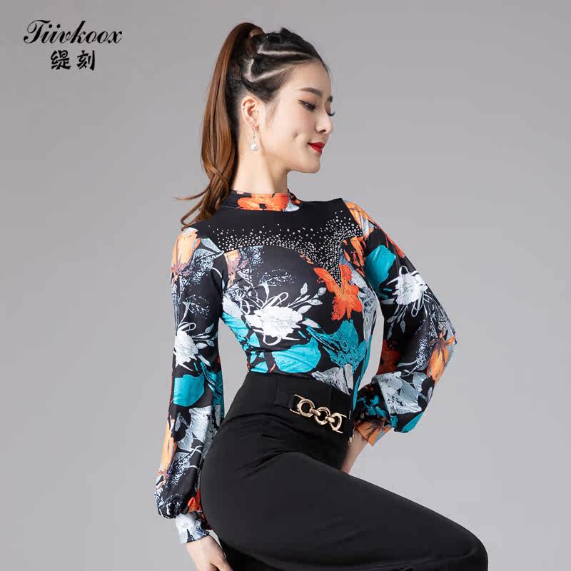 Ballet Phantom's new Latin dance blouses women's Moden Dance Waltz National Peuts Dancing lanterns Long sleeves Sleeves Clothing