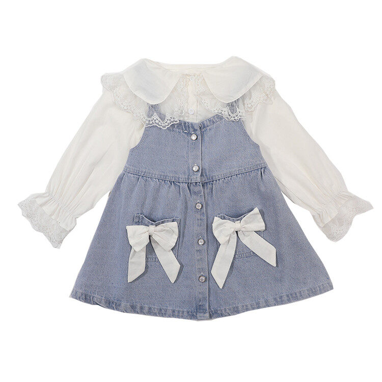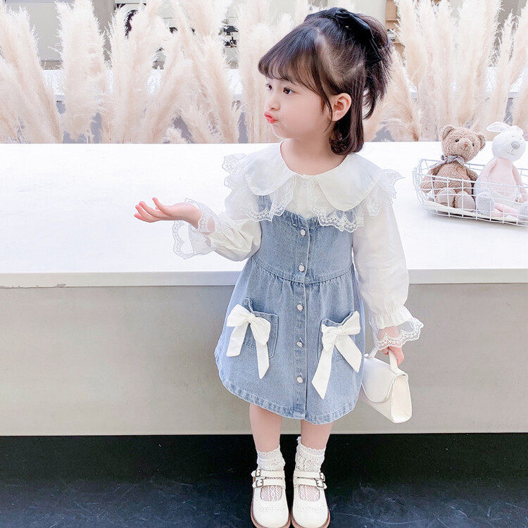 Girl Spring Clothing Suit 2022 New Spring Autumn Season Foreign Pie Baby Children Suit Denim Dress Two Sets Trendy