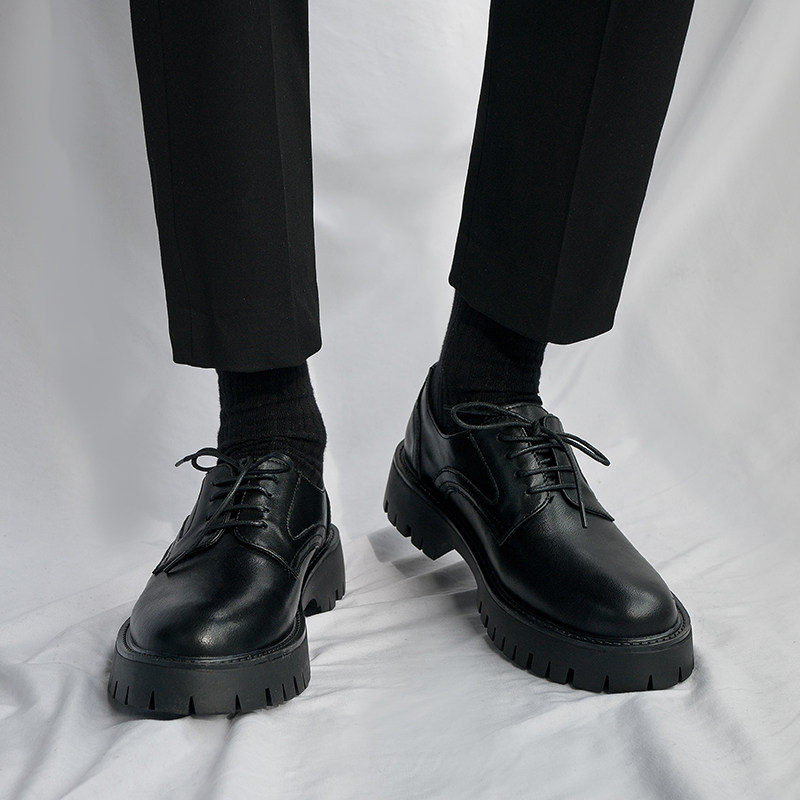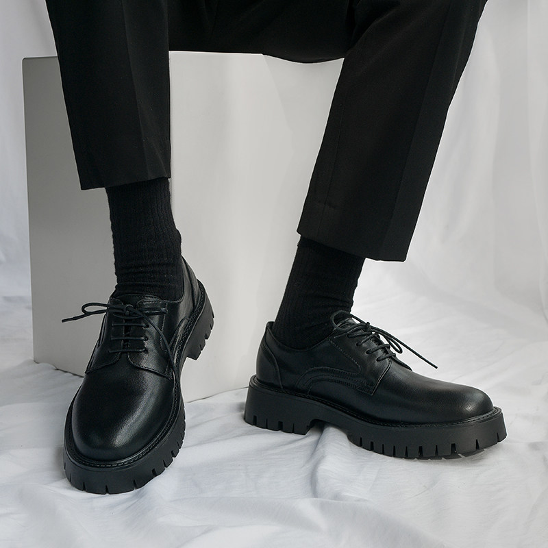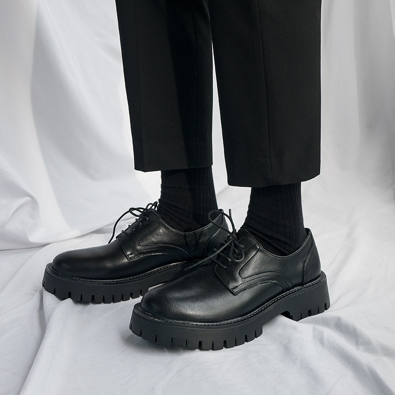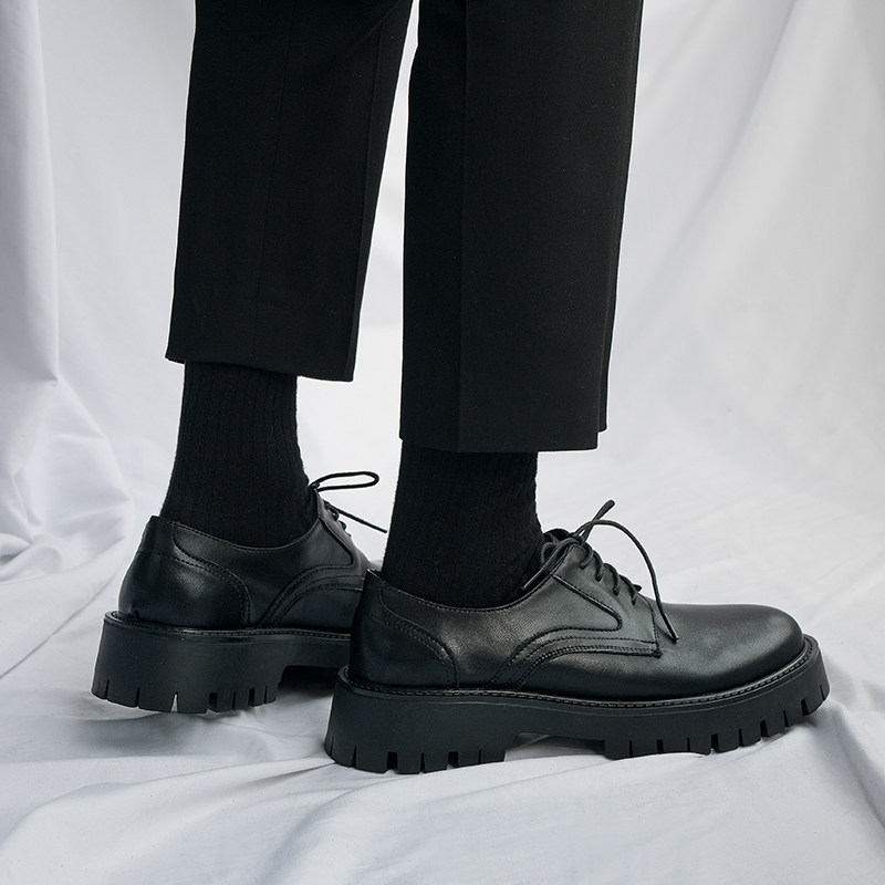 Leather shoes men summer business dress English wind thick sole trend Korean version of the handsome inside elevated black low-gang Martin boots