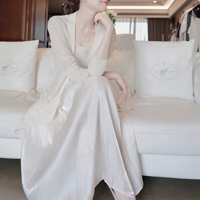 White 100 pleats half body dress female spring and summer retro high waist display slim fit with a long version of large pendulum skirt asd