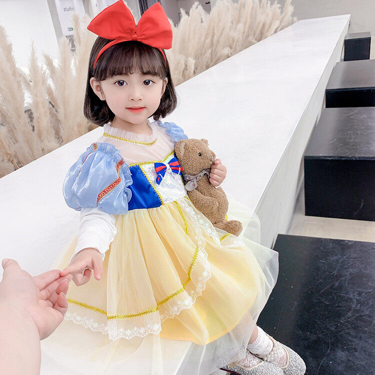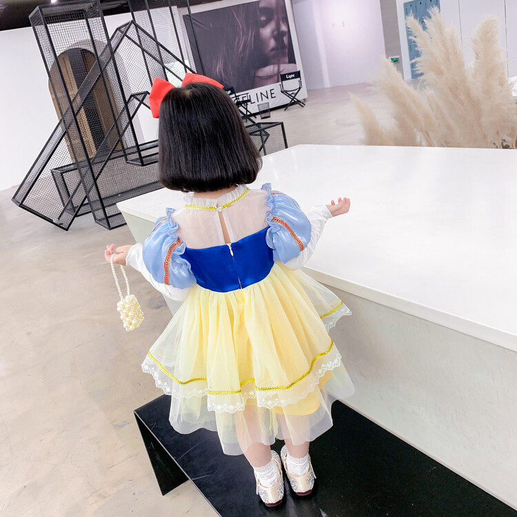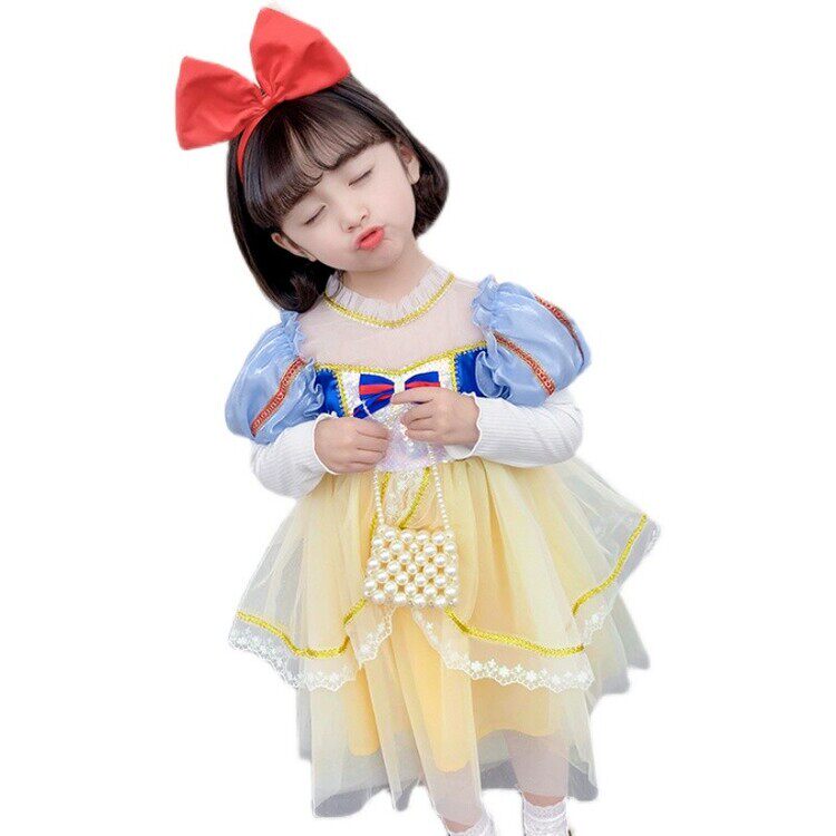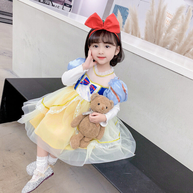 White Snow Princess Dress Girl Spring Dress Children's Age Gown Dress Foreign Dress Spring Autumn Children Baby Love Salsa New Dress
