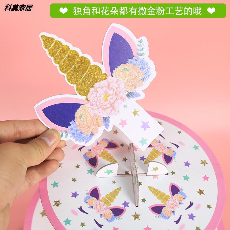 Eurostyle Cartoon Disposable Paper Unicorn Cake Shelf Triple Dessert Rack Nursery Wedding Birthday Party Supplies