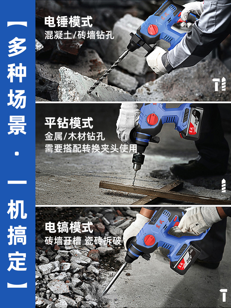 Dongcheng charging electric hammer drill electric pick lithium electric brushless shock drill High power electric drill Three-electric hammer Dongcheng power tool