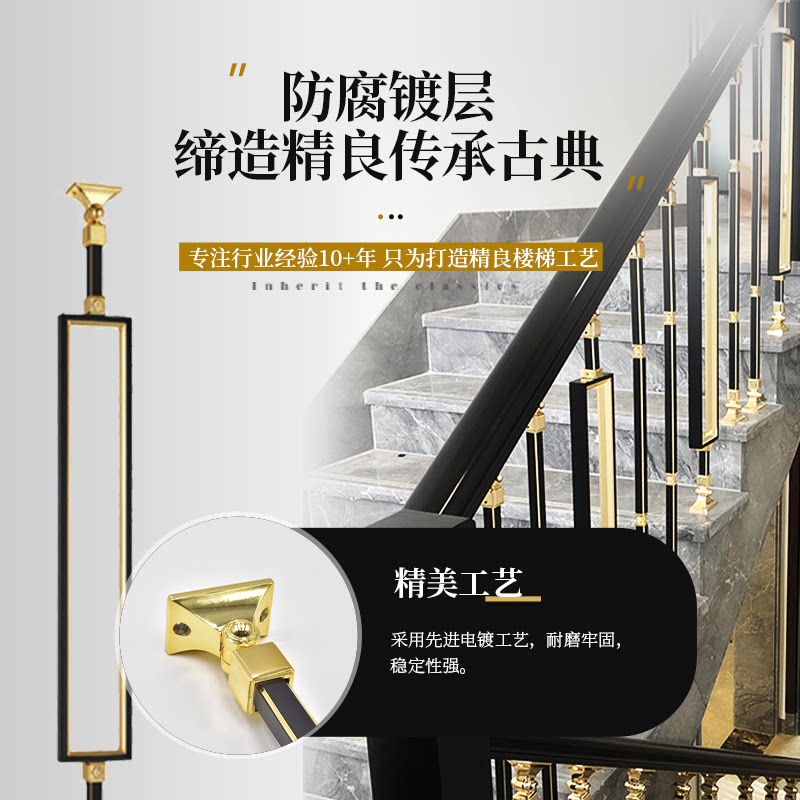 Villa Hotel Aluminum Alloy Stairway Armrest Matte Black K Gold Guardrails Light Lavish Minima Eurostyle New Chinese Railings Customised