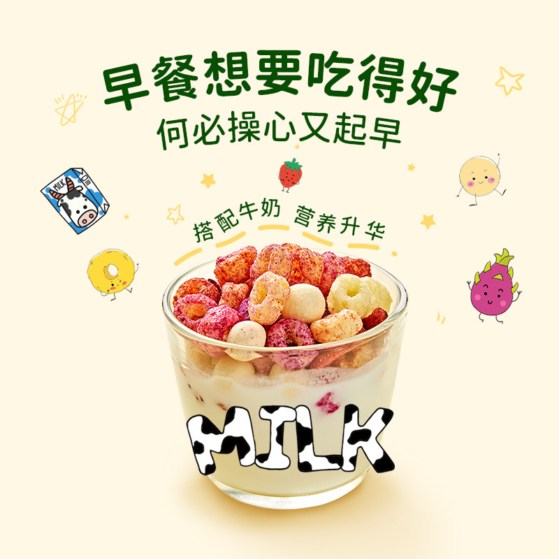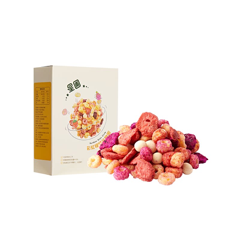 Grain Ring Freeze-dried Strawberry Slice (18%) Cheese Cheese Pop ball Freeze-dried Fire Dragon Fruit pieces (15%)