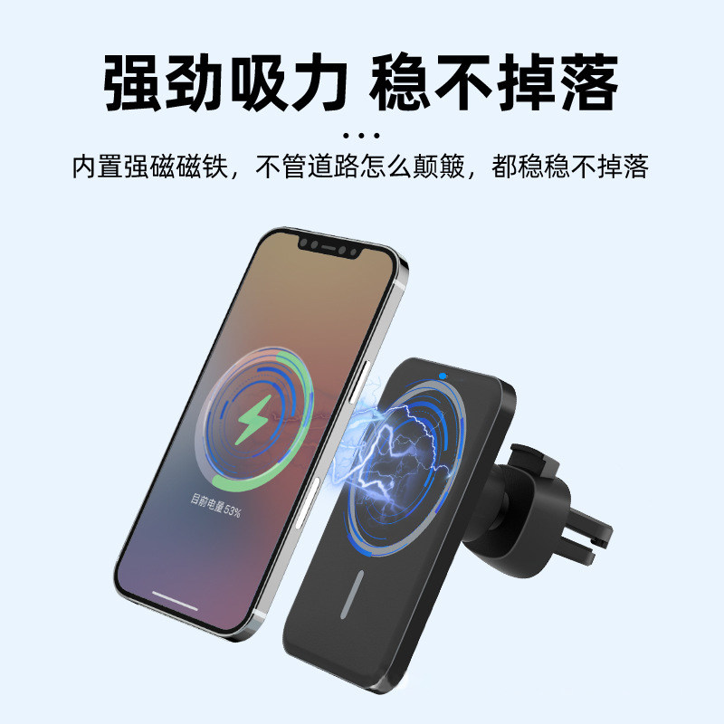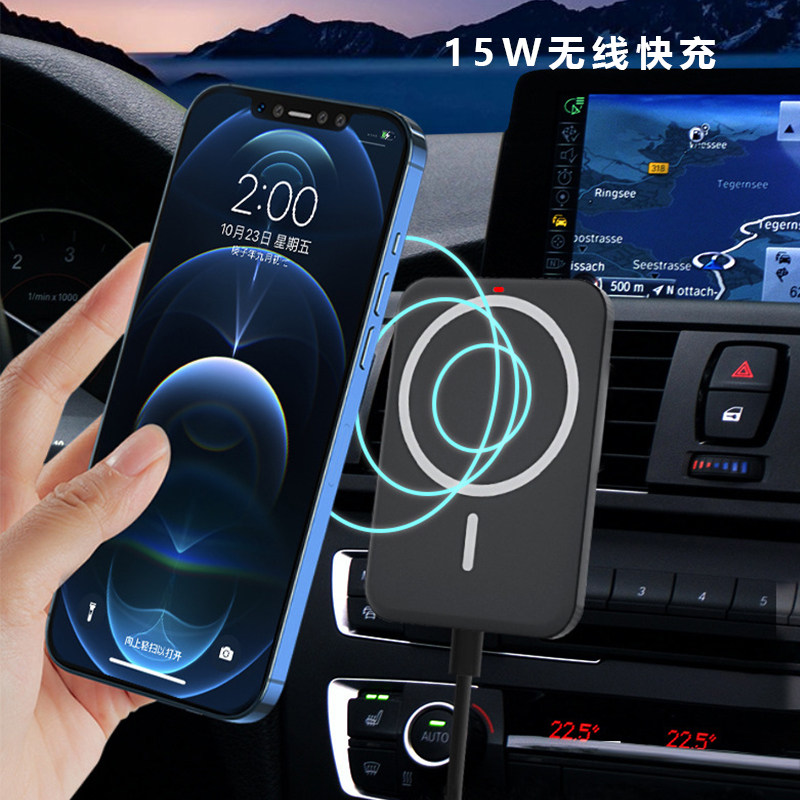 On-board magnetic suction wireless charger Phone rack Automotive air outlet 15W Quick charge applicable MagSafe Apple 12