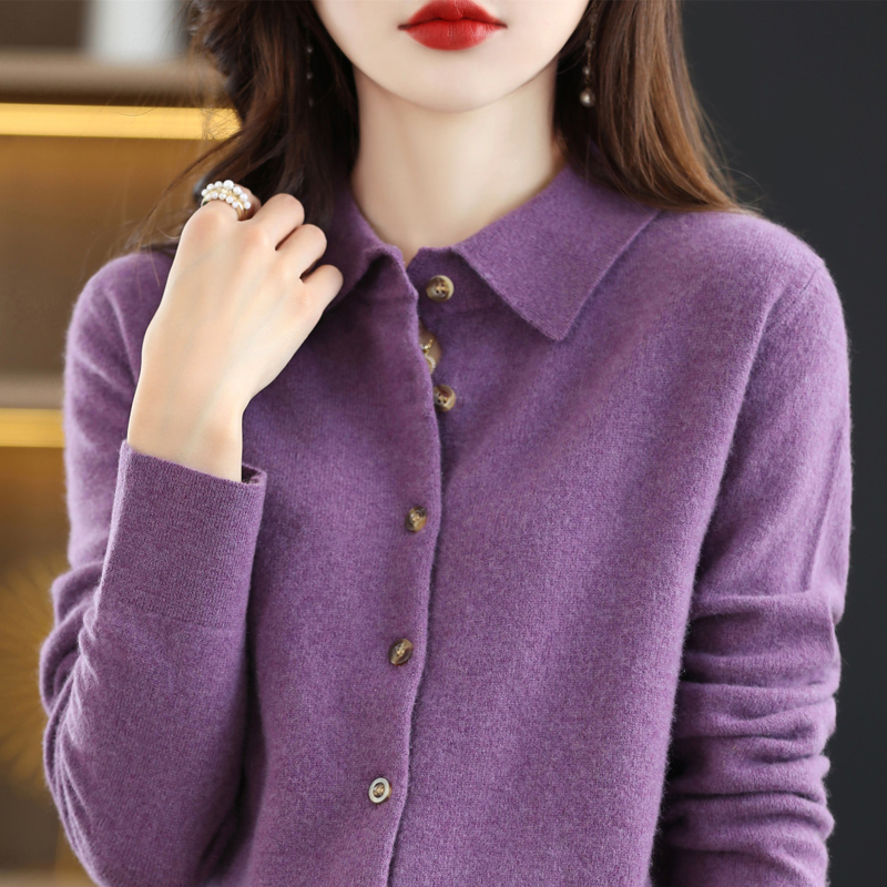 Spring-autumn POLO collar knit shirts Outer lap loose long sleeves sweaters Non-cashmere cardiovert jacket temperament overturning collar jacket bottom