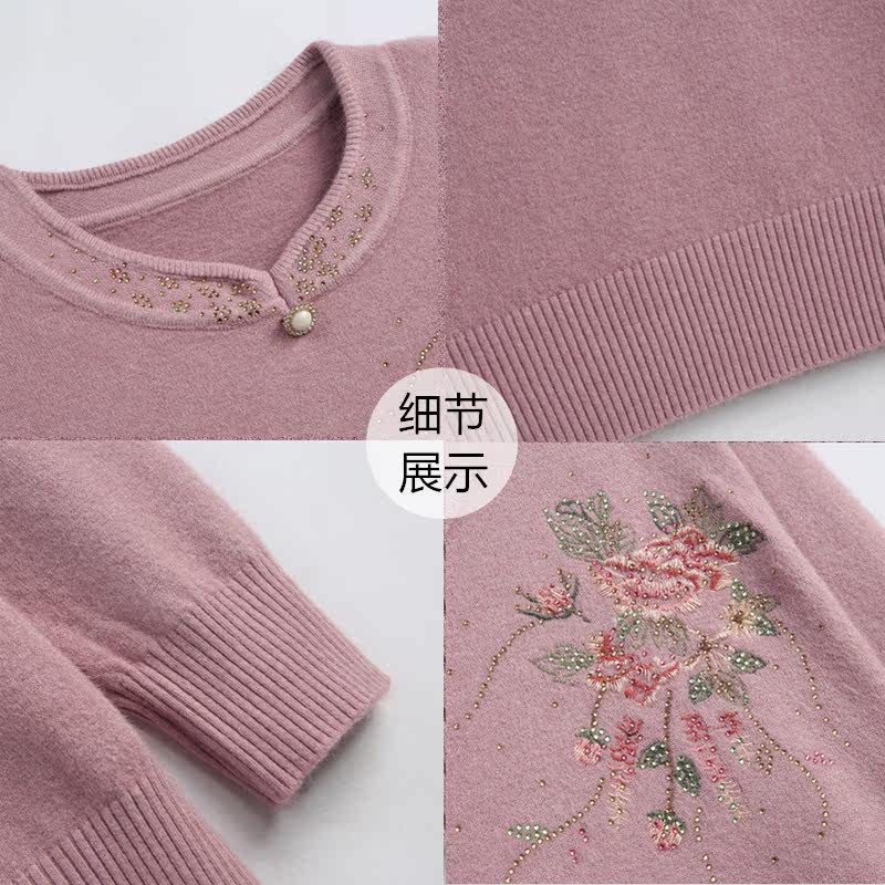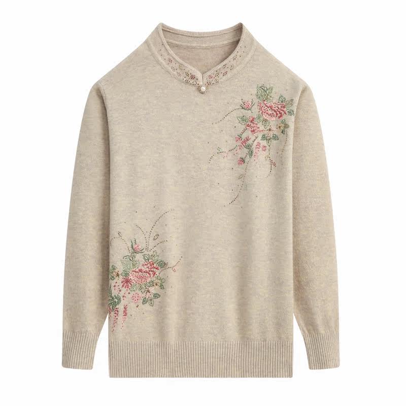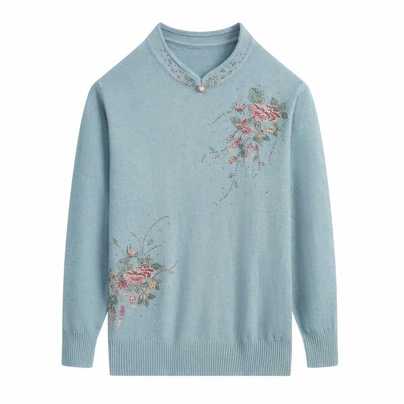 Middle aged mother dress Spring long sleeves Knitted Sweatshirt In old age Women outfits Undershirt Embroidered Qipao Collar Clothes