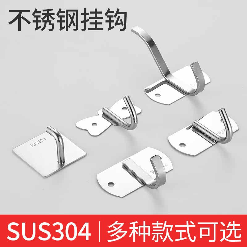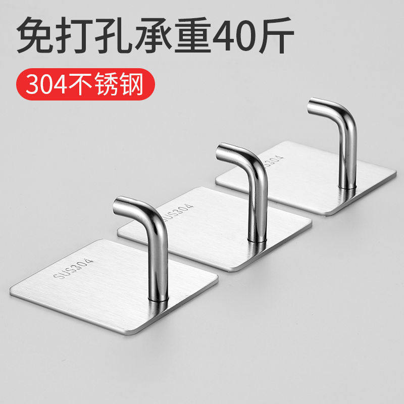 Stainless Steel Stick Hook Hook Powerful Load Bearing Free Punch Wall Hook Kitchen Toilet Bedroom Door Rear Clothing Cap Hook-Taobao