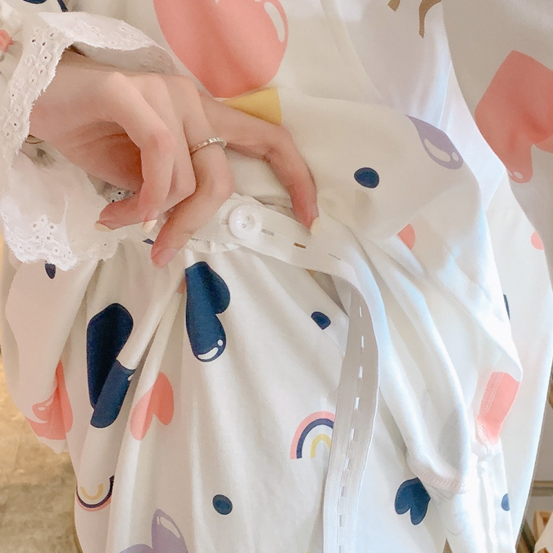 Spring and summer thin section confinement clothes cotton loose sweat-absorbing pregnant women pajamas postpartum April 5 breastfeeding nursing clothes suit