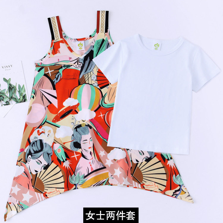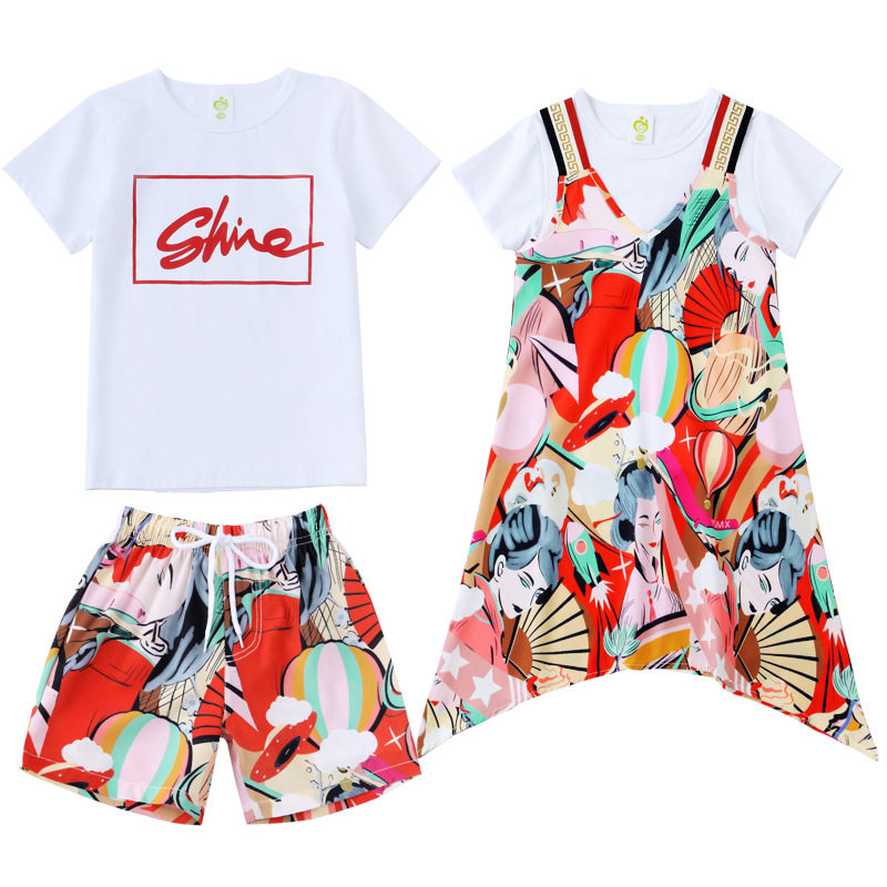 Parent-child summer clothes, a family of three and four, 2022 new trendy mother and daughter clothes, Western style suits, seaside vacation summer time