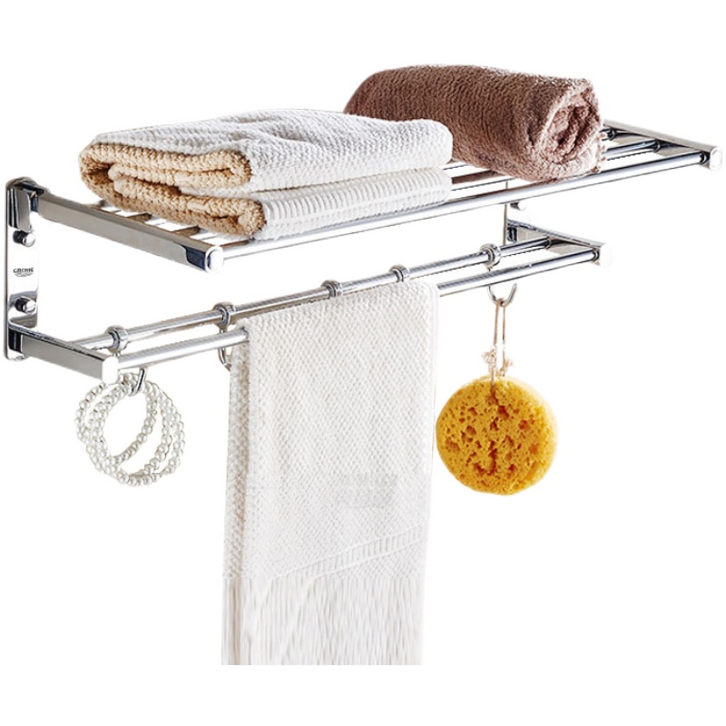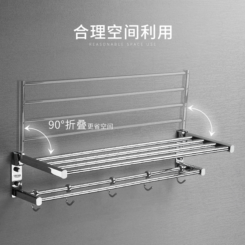 GROHE folding full copper bath towel rack toilet bathroom towel rack storage rack free punching hardware hanger