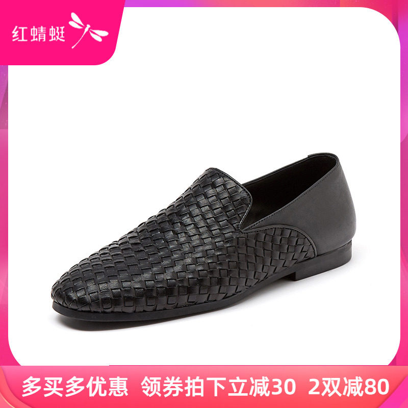 Red Dragonfly Legue-bean Shoes Men's Soft Bottom One Foot Pedal Woven Men's Shoes Sloth Casual Trends Male Lefu Shoes A1302805