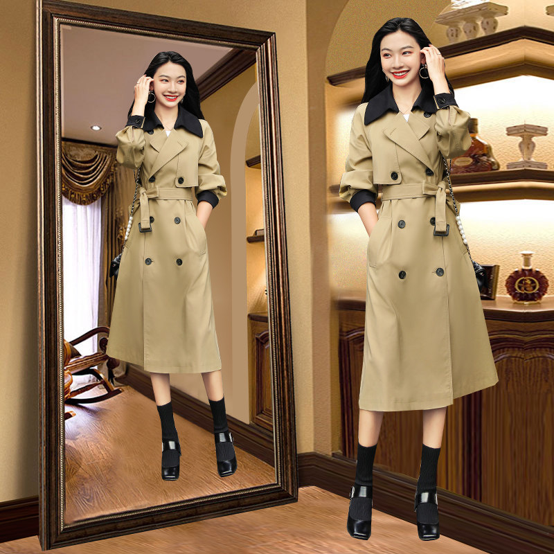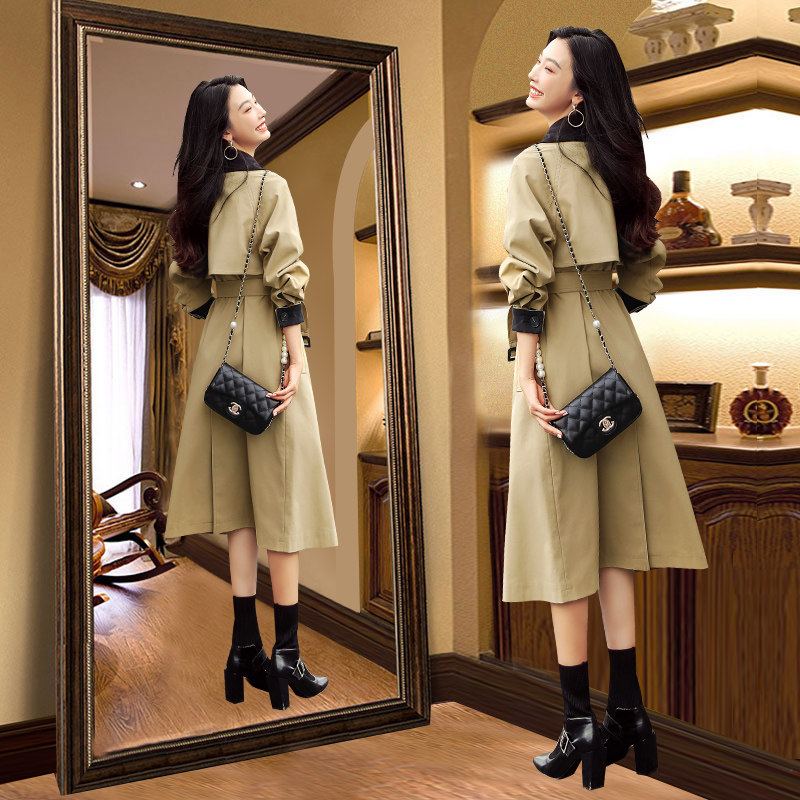 Carole windbreaker women's mid-length version 2022 spring and autumn new casual high-end coat fashion lace-up coat British style