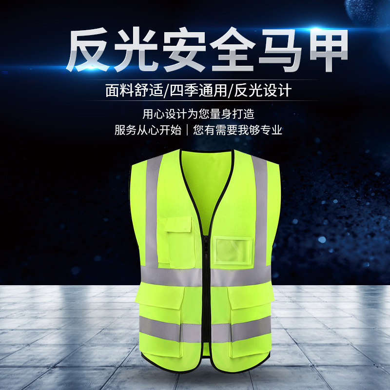100 Ireflective vest Construction Man Safety Machia Summer traffic Foreign delivery Sanitation fluorescent work jacket Custom