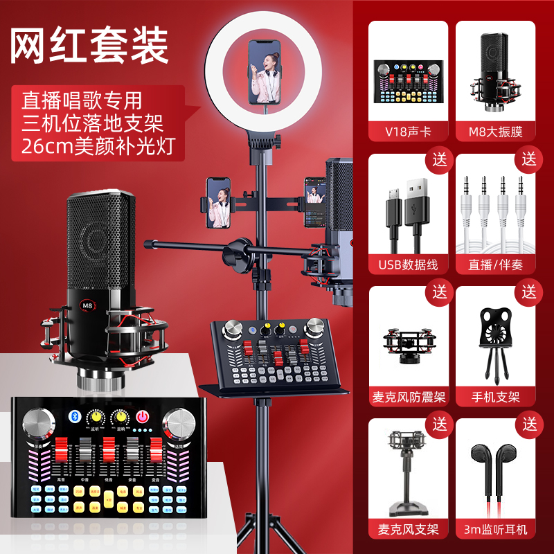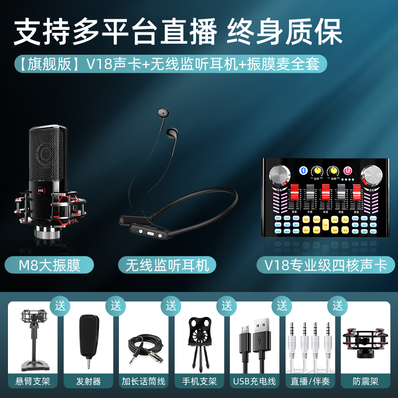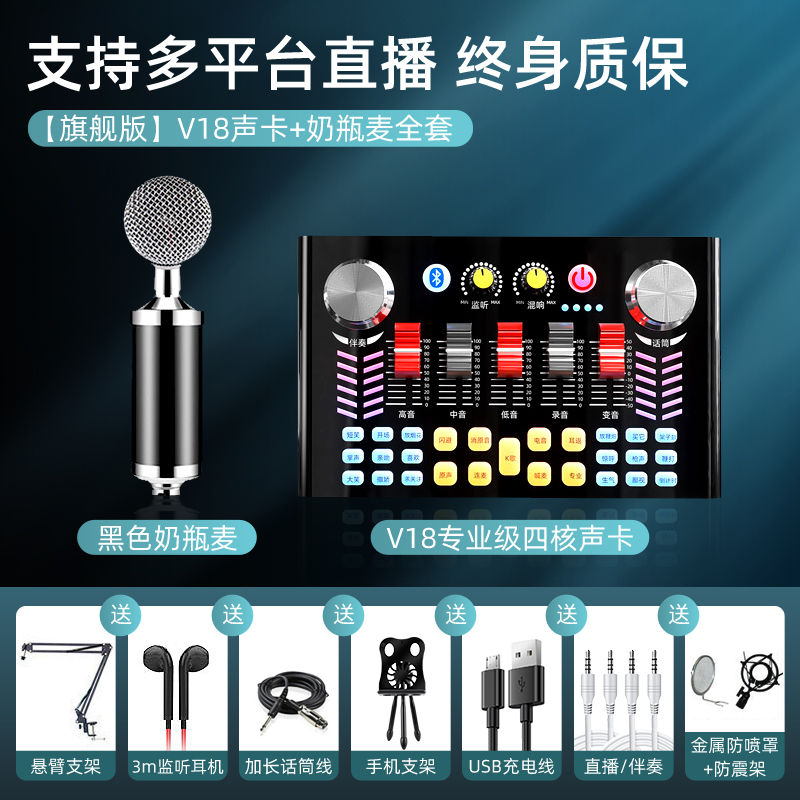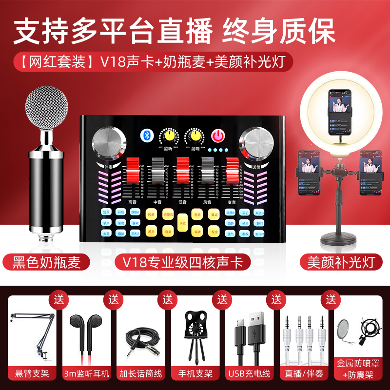 V18 live special sound card equipment full phone protection suit shake-up universal desktop computer anchor capacitor microphone online red varyware professional class K song theorizer popular singing microphone