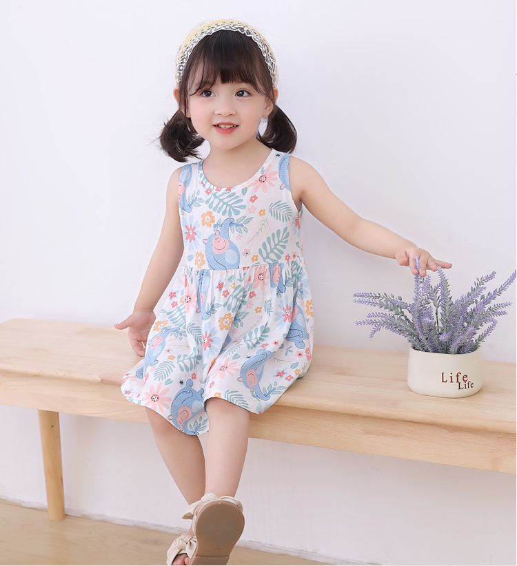 Girl Silk Dress in Child Girl's Artificial Cotton Summer Sleeping Kids Dress Clothes