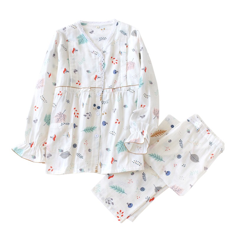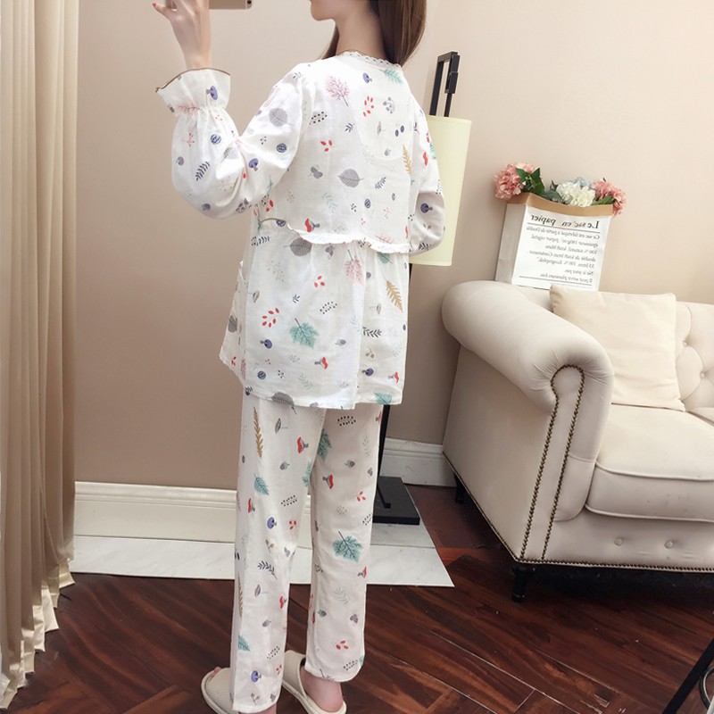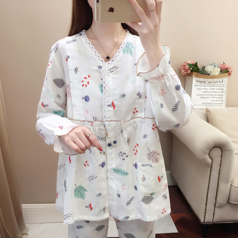 Moon Subsuit Spring Summer Pure Cotton Gauze Easy Suction Sweaty Pregnant Pregnant Pregnant Woman Pyjamas Postpartum Sweatshirt And Suckling Breast-feeding Laces Clothing Home Clothing