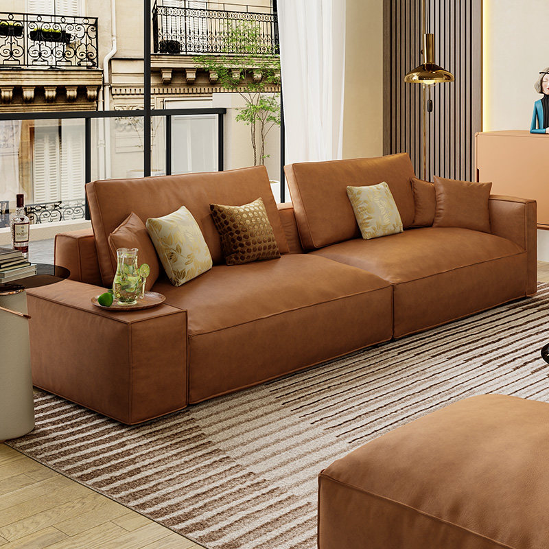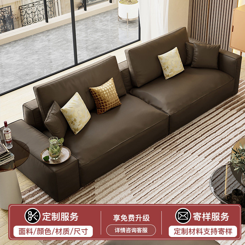 Luxury family Leather sofa head nappa leather small apartment modern simple Nordic tofu block inline sofa