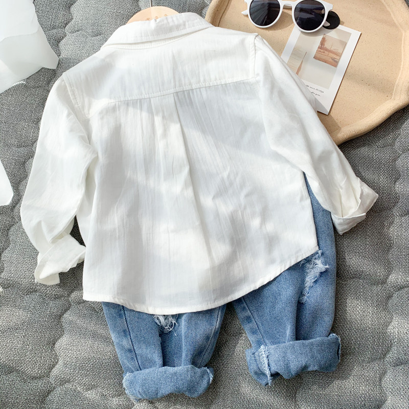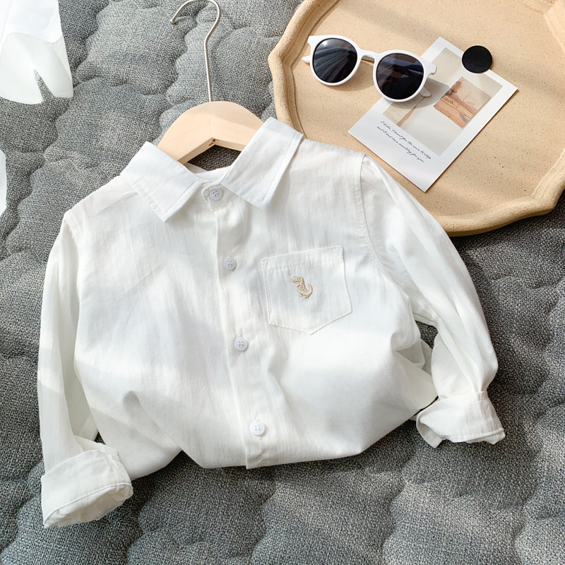 Boy White Shirt Foreign Palate Baby Boy Spring Autumn Season Long Sleeve Blouse Blouse Children Han Edition Casual Lining 100 lap