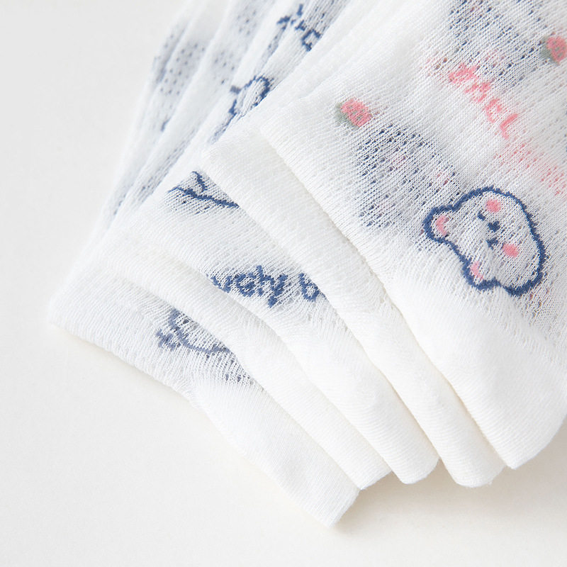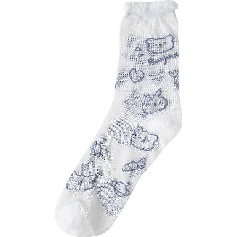 Kiki little Terri glass silk hollow mesh bear medium tube socks women's spring and autumn thin section ins long tube cotton socks